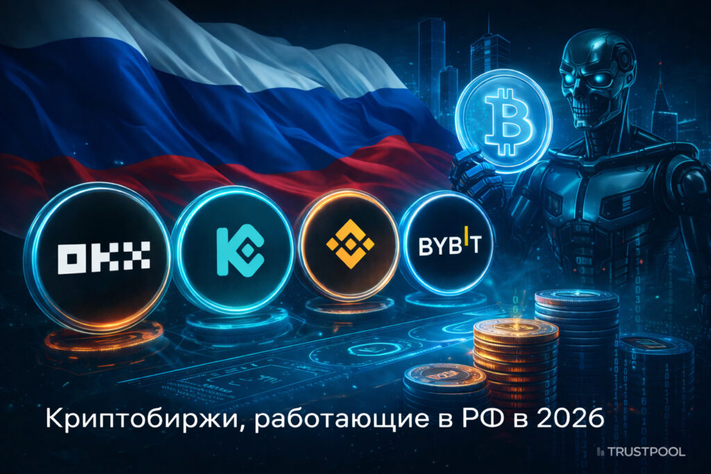 Автор: Trustpool 3 Апр 2026 в 20:09 45 просмотров Криптовалюты начинали как механизм торговли без посредников, но с течением времени сменили вектор в сторону инвестиционного инструмента. А где есть инвестиции, там есть и биржи — криптобиржи. О новых «волках с Уолл-стрит» рассказываем в этой статье. Что такое криптобиржа Несмотря на идею торговли без посредников, в определенный момент посредник всё же понадобился. Дело в том, что анонимность криптовалютных проектов не всегда играет в плюс пользователям. Из-за анонимности в сети и операциях с криптовалютами в частности появляются «нечестные» участники сделок — скамеры. Они могут взять криптовалюту и не перевести за неё деньги, перевести неполное вознаграждение, или наоборот, не отправить монеты за денежное вознаграждение. В условиях повышенной осторожности появились криптобиржи — финансовые организации, контролирующие ход сделок по криптовалютам. Организации берут на себя ответственность за качество сделок и гарантии переводов, а взамен получают небольшую комиссию с купли/продажи криптовалюты на своей площадке. Помимо этого биржа напрямую может торговать с пользователями, обменивая криптовалюту из собственных запасов на фиатные валюты участников торгов, или другие криптовалютные активы. Ну и не стоит забывать о главном смысле существования биржи — упрощение торговли. Вместо поиска единичных торговцев и покупателей криптовалюты существует несколько огромных сетей с ними, где каждый может создать запрос на покупку или продажу криптовалют — ордер. Криптобиржи между собой схожи в наборе функций — они предоставляют возможность пользователям торговать между собой в системе P2P (равных участников), с биржей напрямую и торговать фьючерсами. Ещё пользователи могут открывать ставки на заёмные средства, которые касаются курса криптовалюты — лонги и шорты. Лонг — ставка на то, что курс криптовалюты вырастет, шорт — что упадёт. Награду пользователи получают из средств проигравших, а в случае слишком больших расходов их позиция будет ликвидирована — ставка закрыта, деньги изъяты. Торги лонгами и шортами проводятся с учётом кредитного плеча — средств, которые пользователь занял у биржи и получит в случае правильного прогноза. Плечо Х10 означает, что пользователь может сделать ставку в 10 раз превышающую его баланс кошелька. Помимо этого биржи предлагают следить за примерами наиболее успешных трейдеров — тех, чей доход за месяц/сутки оказывается больше, чем у остальных и повторять за ними. Отличаются биржи друг от друга предлагаемыми для торгов криптовалютами, объёмами торгов, индивидуальными особенностями и резервами. Bybit История биржи Биржа появилась в 2018 году как проект Бена Чжоу и нескольких торговцев в The Wall Street и быстрыми темпами захватила рынок. Известность росла благодаря программе лояльности, поощрениям активных торговцев, эйрдропам — бесплатной раздаче криптовалюты и опыту разработчиков в торговле различными активами. Вычислительные мощности биржи расположены в Сингапуре, а главный офис в Дубае. Для соблюдения условий торговли компания открыла филиалы во многих странах мира, а также получила: Одобрение от Управления по регулированию криптовалютных активов (VARA). Лицензию кипрской комиссии по ценным бумагам (VASP). Предварительное одобрение Международного финансового 